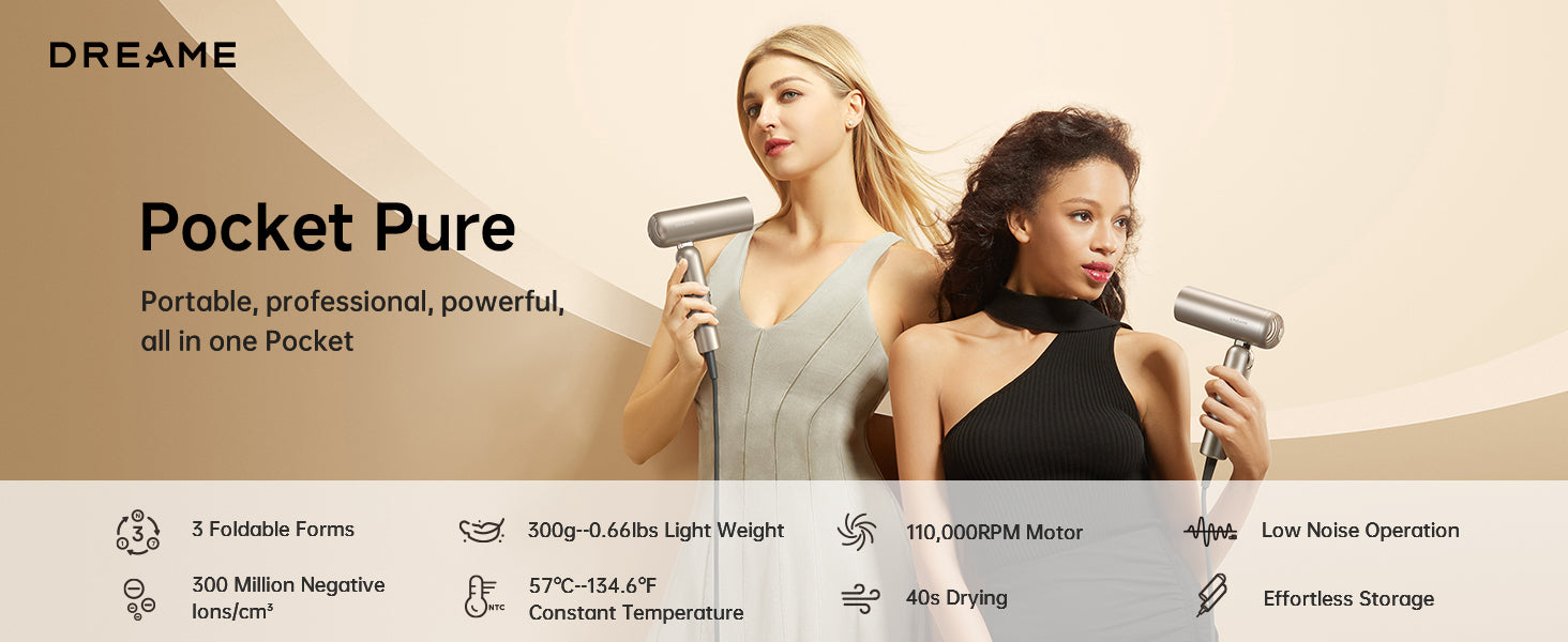110,000 RPM motor & 70m/s airflow dry short hair in 40s, ideal for busy schedules.